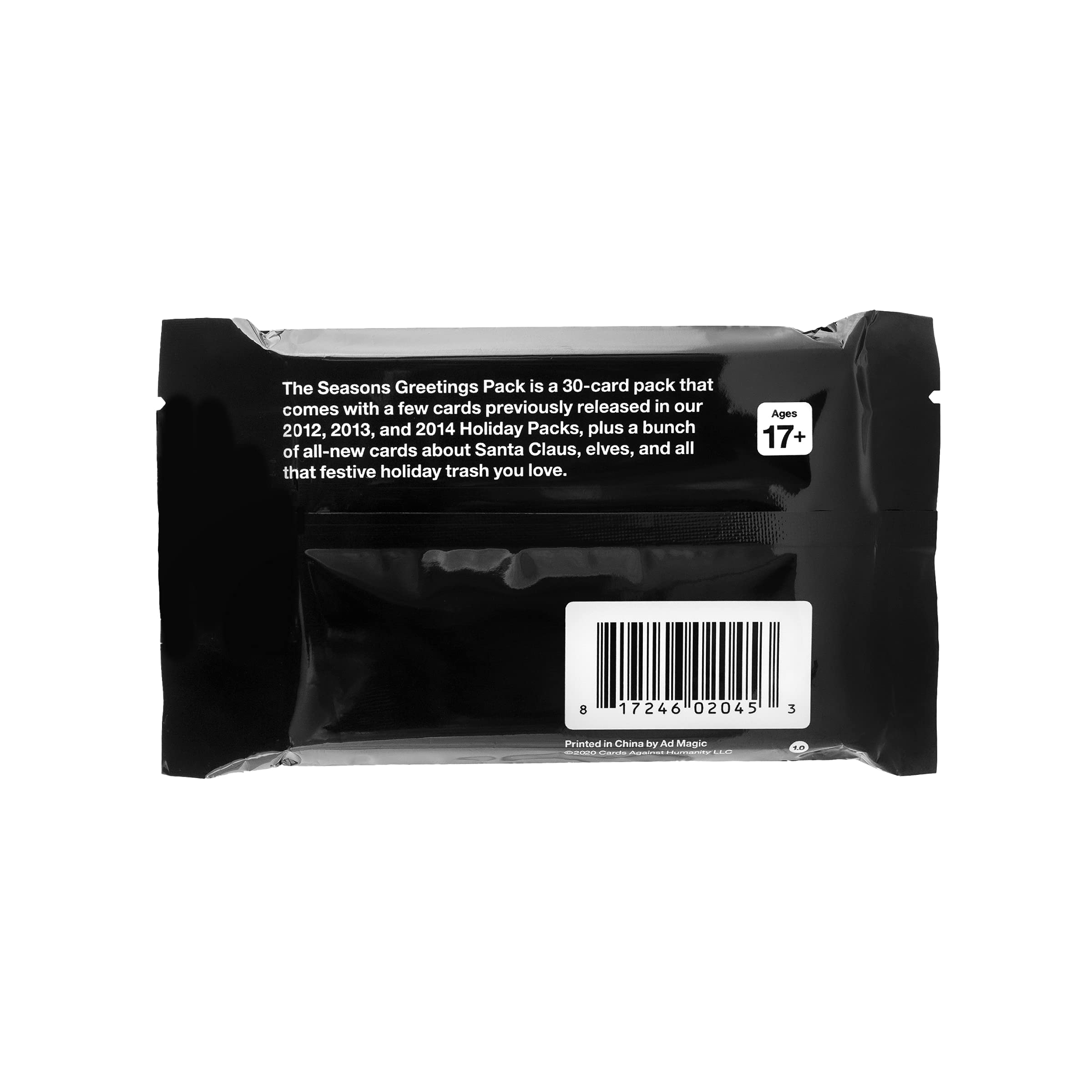 Includes cards previously released in our 2012 2013 and 2014 Holiday Packs plus a bunch of new cards. Seasons Greetings pack is an expansion of the popular game that adds a seasonal twist. The Cards Against Humanity.